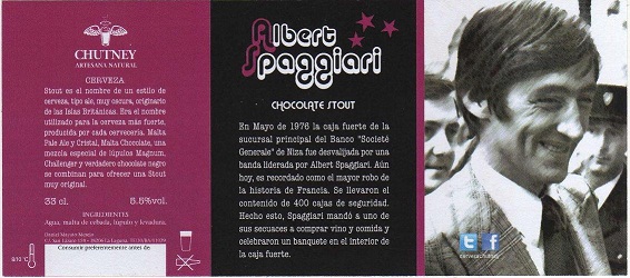 Es una Stout, muy oscura, elaborada con malta Pale Ale, Crystal y Chocolate y lúpulos Magnum, Challenger, con 5,5%vol.